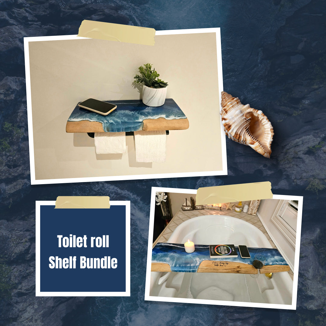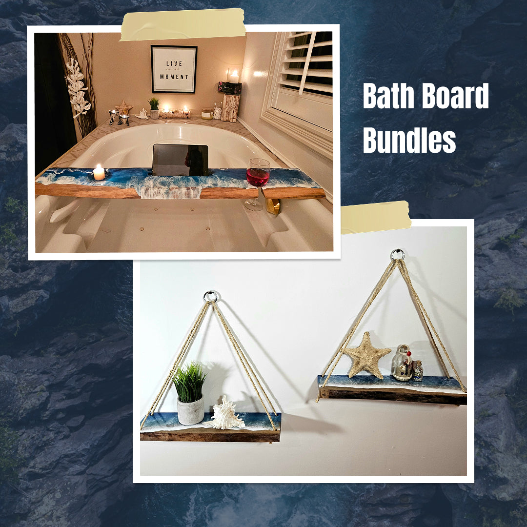 Live Edge Wood Bath Caddy Tray with Beach Ocean Resin Art